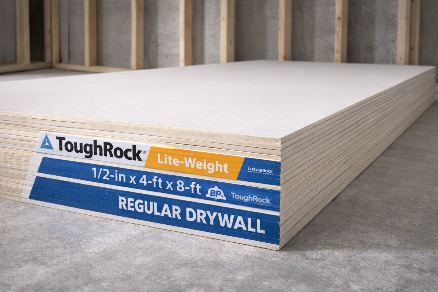 ToughRock 1/2-in x 4-ft x 8-ft lightweight drywall panel for walls and ceilings. Easy installation, smooth finish, and durable gypsum construction.