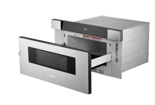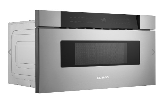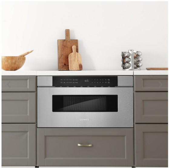 Maximize your kitchen space seamlessly with the Cosmo COS-MWD3012NHSS Microwave Drawer. This top-loading microwave drawer eliminates countertop clutter with its built-in installation, integrating directly into cabinetry. Its 30 inch construction is designed to fit into wider cabinets and accommodate larger dishes for cooking needs. Elevate your culinary experience with 10 power levels and 1000 watts of cooking power, ensuring meals are a flavorful success. Opening and closing the microwave is effortless with the touch of a button on an accessible control panel. Convenient automatic presets including melt, soften, popcorn and beverage make meal preparation a breeze. Thawing food is simplified with weight or time defrost options, and the included defrosting rack maximizes the microwave’s capacity. This microwave is built with safety in mind, providing a child lock function. The sleek stainless steel build blends seamlessly into any modern kitchen design.