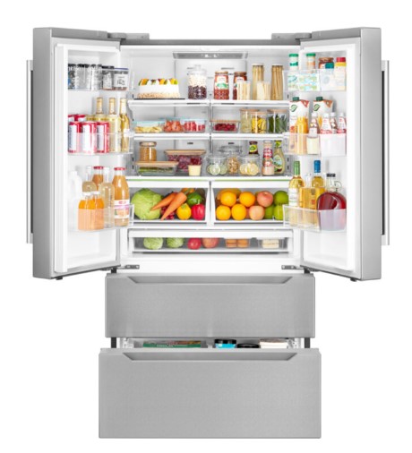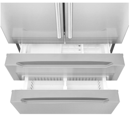 Cosmo’s Counter Depth French Door Refrigerator with 22.5 cu. ft. capacity has a sleek and smooth exterior design with impressive innovative features. Including a spacious bottom-freezer, this refrigerator offers organizational versatility for effortless storage and access to a wide range of foods from meats to fresh produce. Fully extendable freezer drawers, adjustable shelves and energy-efficient LED lights provide a clear view of all your fresh food. Our advanced preservation technology ensures you experience pleasure and convenience on a whole new level with perfect storage temperatures for maintaining fresher fruit, vegetables, fish, meat and dairy products.