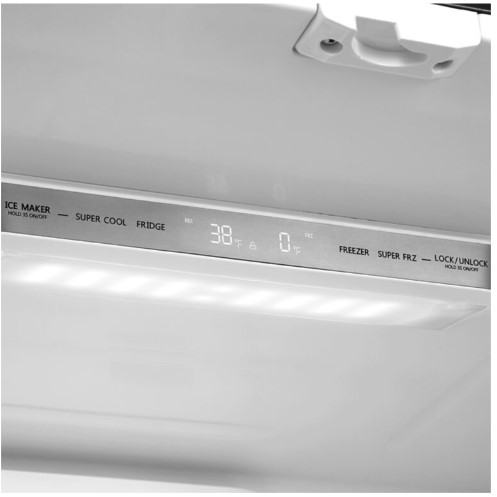 Featuring electronic temperature touch controls that are easy-to-reach for both the refrigerator and freezer section. Find what you need easily with clear LED interior lighting.
